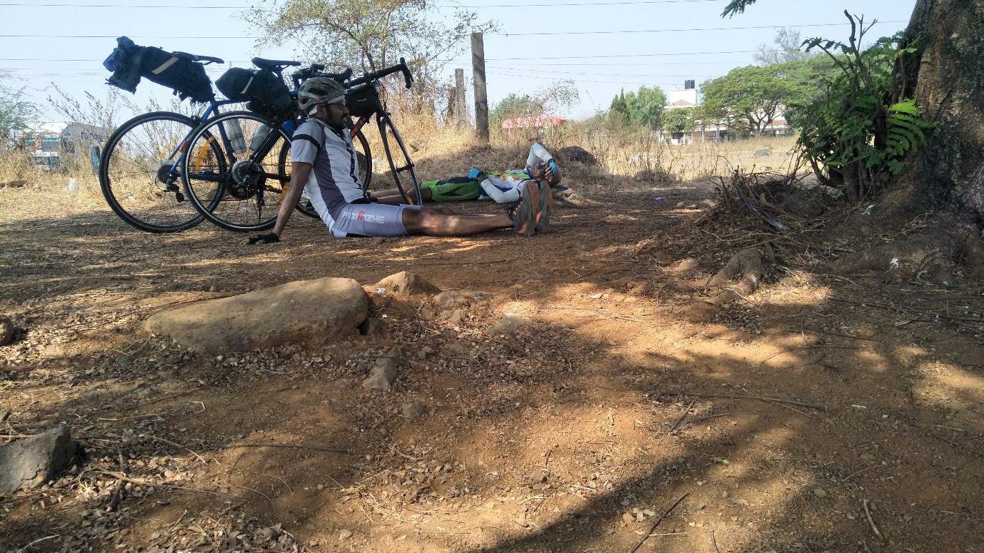 Well now we were just riding cautiously since the route was hilly and we could not afford too loose lot of energy. It was 12 pm and we had covered 130 kms. The temperature just skyrocketed to 46.4(refer above) by now.